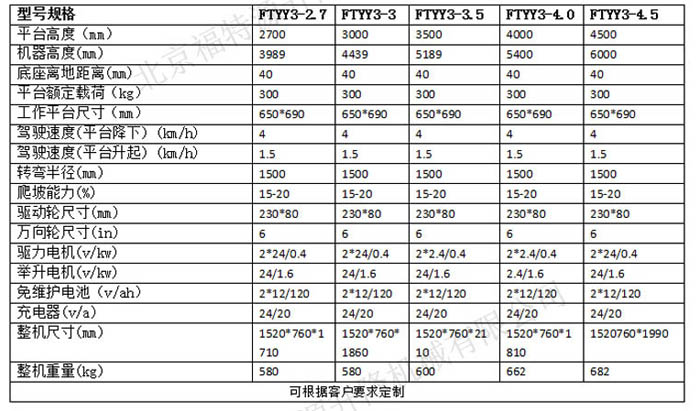 ▍全電動(dòng)高空工具車(chē)常規(guī)參數(shù) / Product Parameter